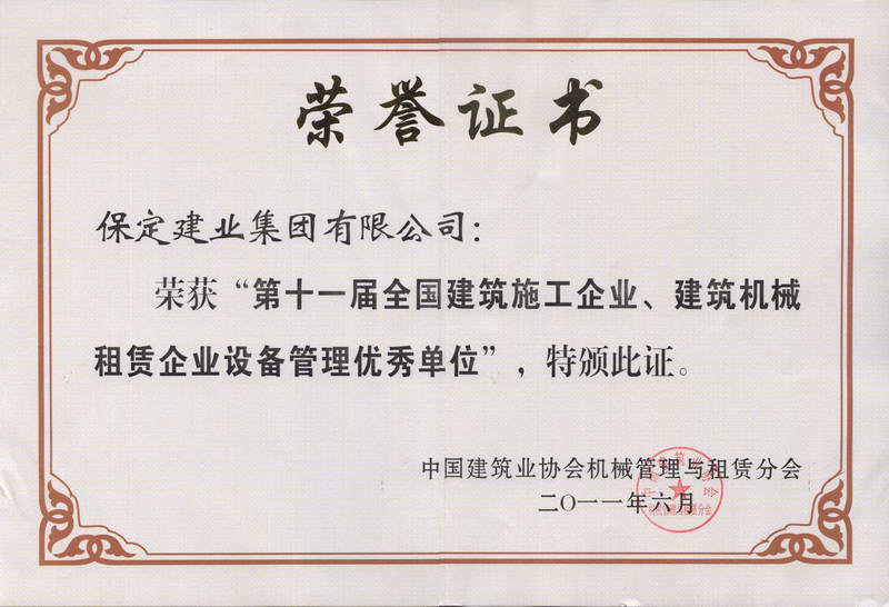 2011全国十一届机械租赁优秀企...